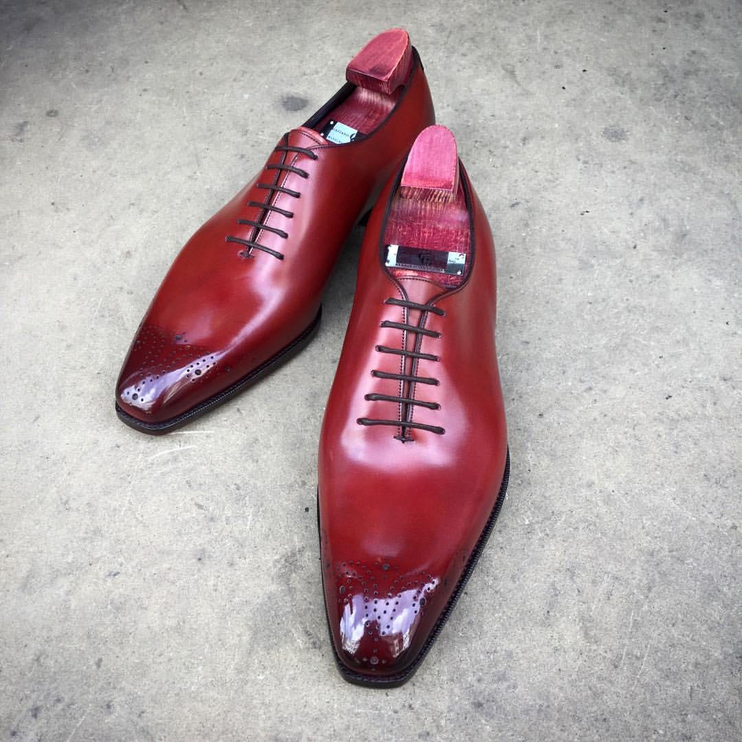 New Handmade Mens Cherry Color High Shined Dress Lace up Shoes