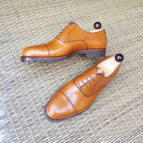 Handmade Mens Oxford Cognac Calf Dress Lace up Shoes