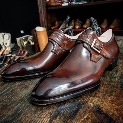Inner: Soft Sole: Leather Gender : Male Heel: Leather Color: Maroon Style: Dress/Formal Monk Strap Shoes Totally Hand stitched Manufacturing time 7-10 business days If you can’t find your Size/Color just send us message we will make for you.