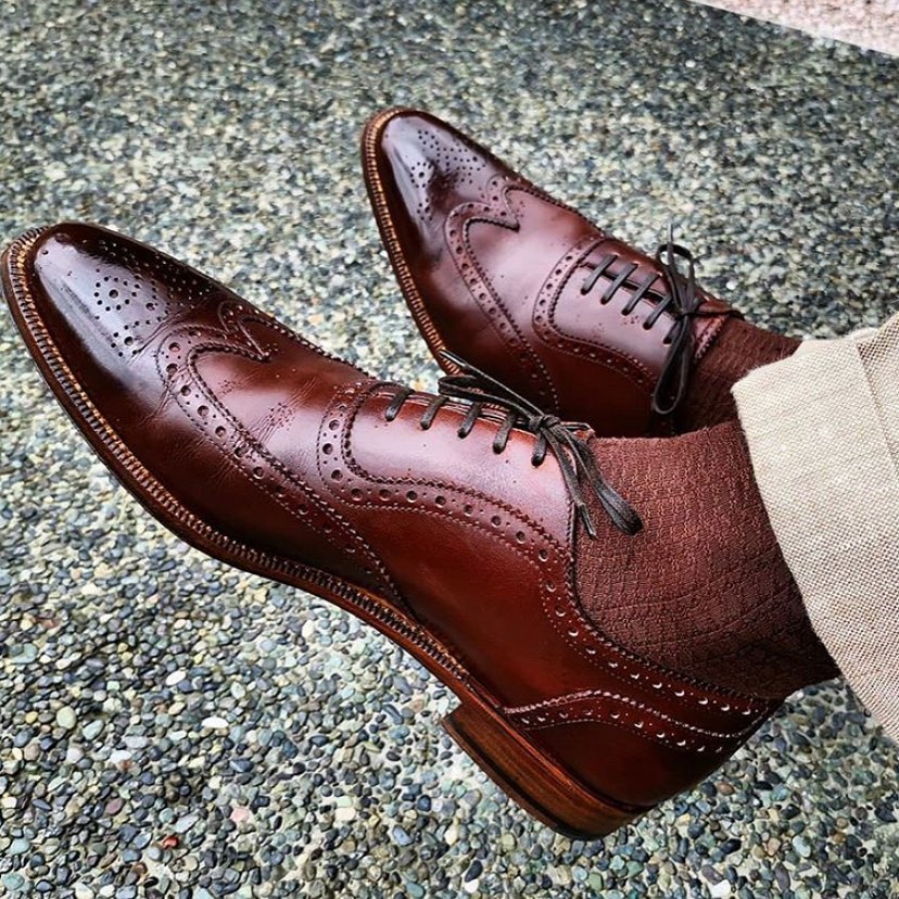 New Men Burgundy Calf Oxford Wingtip Dress Shoes
