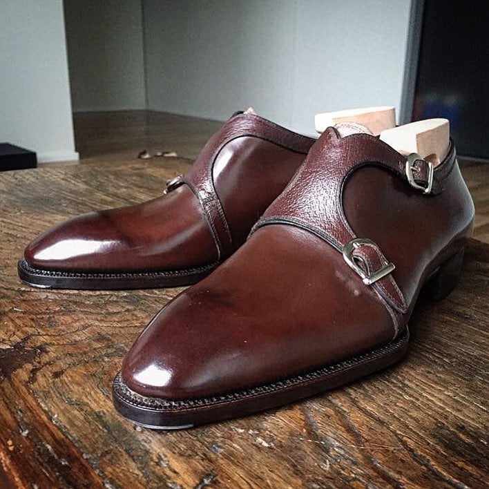 Inner: Soft Sole: Leather Gender : Male Heel: Leather Color: Brown Style: Double Monk Shoes Totally Hand stitched Manufacturing time 7-10 business days If you can’t find your Size/Color just send us message we will make for you.