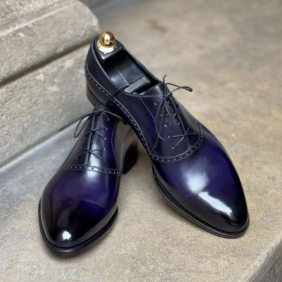 Handmade Mens Superb Blue Balmoral Oxford’s Dress Shoes