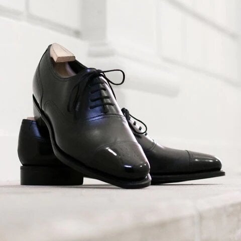 Handmade Black Calf Leather Dress Formal Lace up Men Shoes