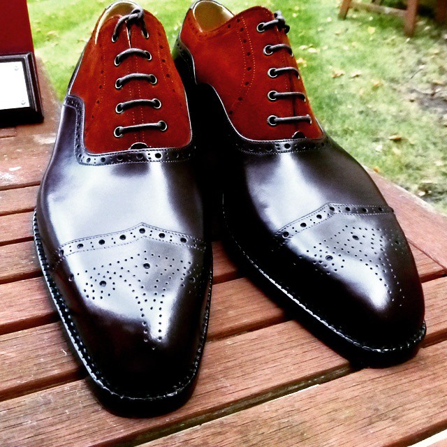 Black Calf and Red Suede Leather Dress Formal Oxford Shoes