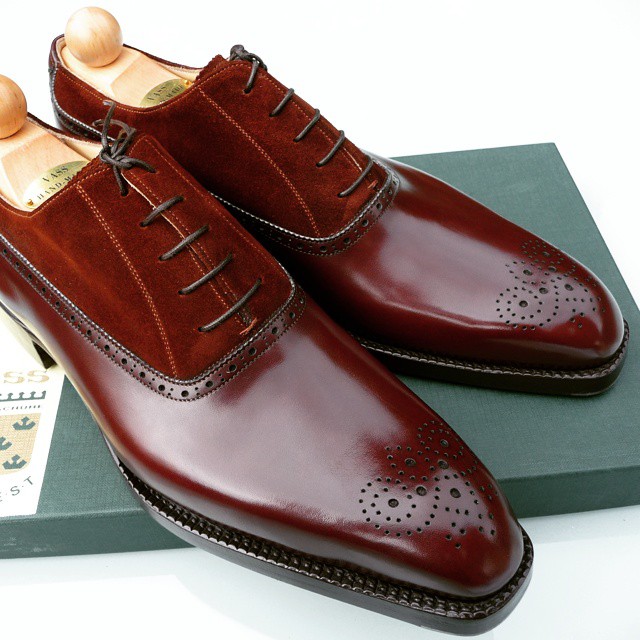 Handmade Mens Red Cognac Calf and Red Suede Leather Dress Formal Shoes, Men Oxford Brogue Lace up Shoes