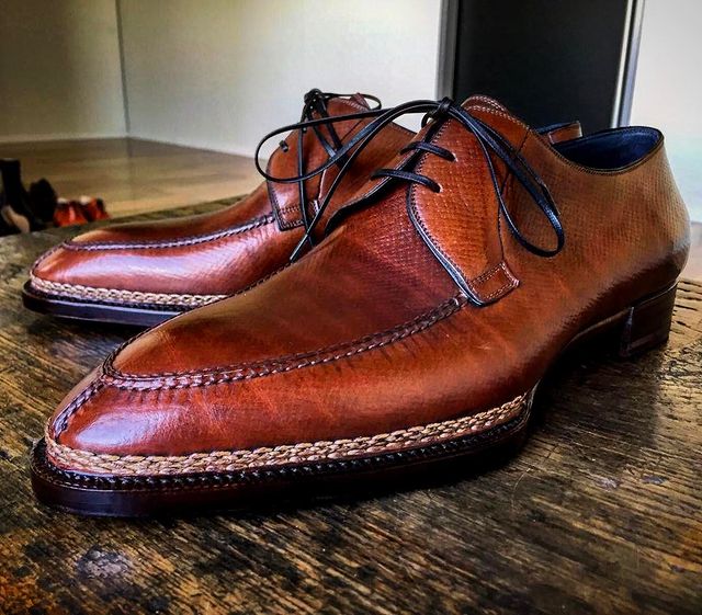 Light Brown Almond Toe Alpine Hatch Grain Leather Dress Shoes
