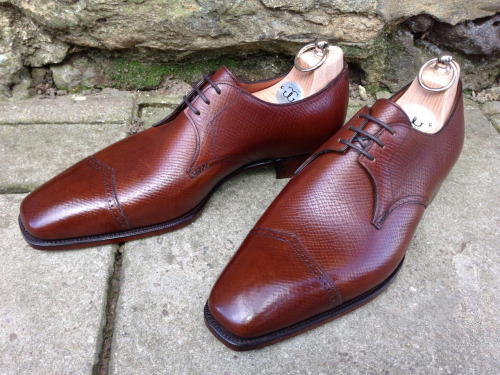 Tan Hatch Grain Leather Lace up Dress Shoes