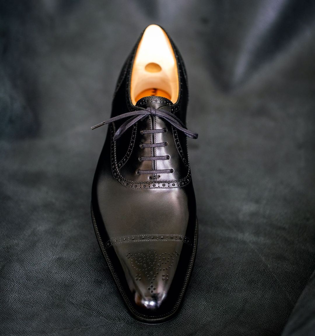 Bespoke Handmade Black Oxford Lace up Brogue Dress Shoes