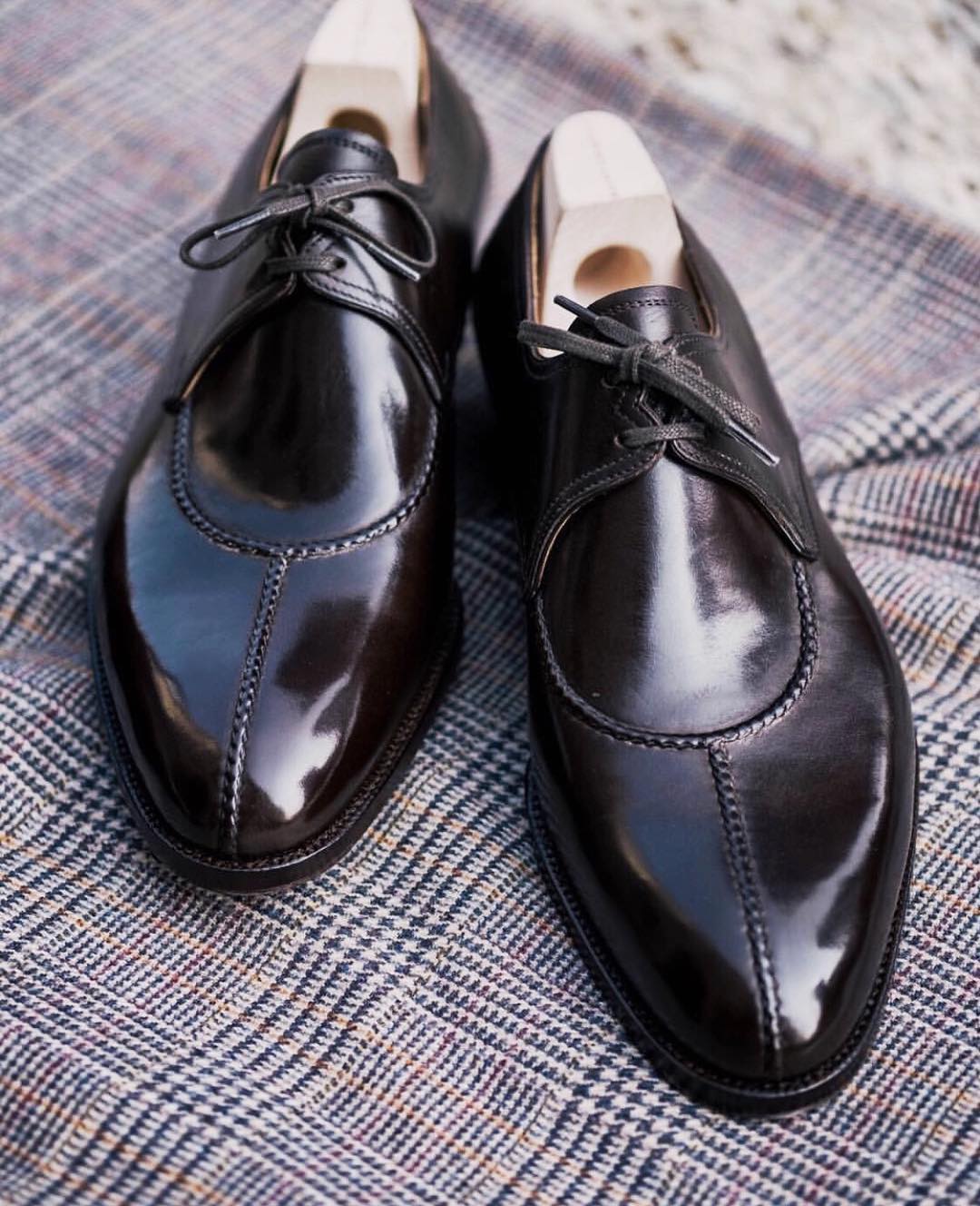 Inner: Soft Sole: Leather Gender : Male Heel: Leather Color: Black Style: Derby Shoes Toe-Shape: Apron Toe Totally Hand stitched Manufacturing time 7-10 business days If you can’t find your Size/Color just send us message we will make for you.