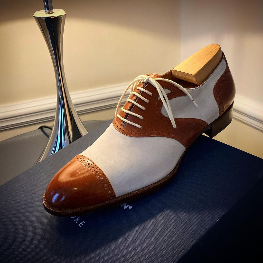 Handmade Mens Brown White Oxford Lace up Dress Shoes