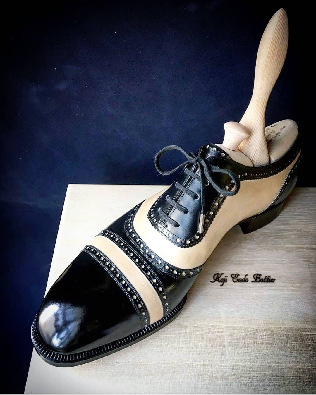 Handmade Black Beige Color Unique Men Dress Oxford Formal Shoes