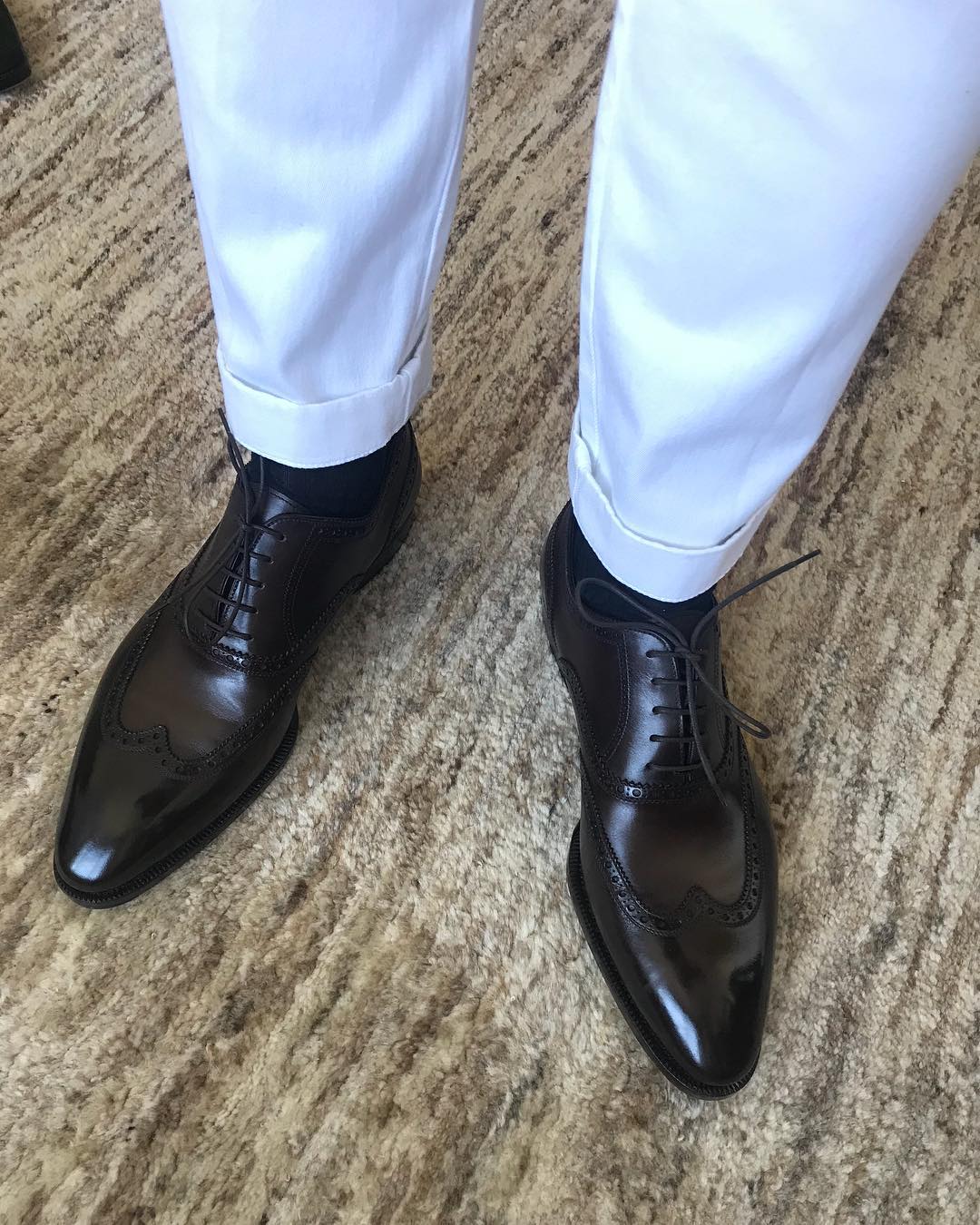 Inner: Soft Sole: Leather Gender : Male Heel: Leather Color: Black Style: Wingtip Oxford Shoes Totally Hand stitched Manufacturing time 7-10 business days If you can’t find your Size/Color just send us message we will make for you.