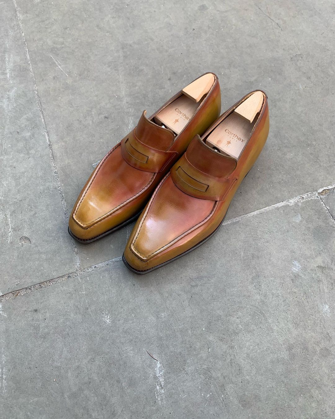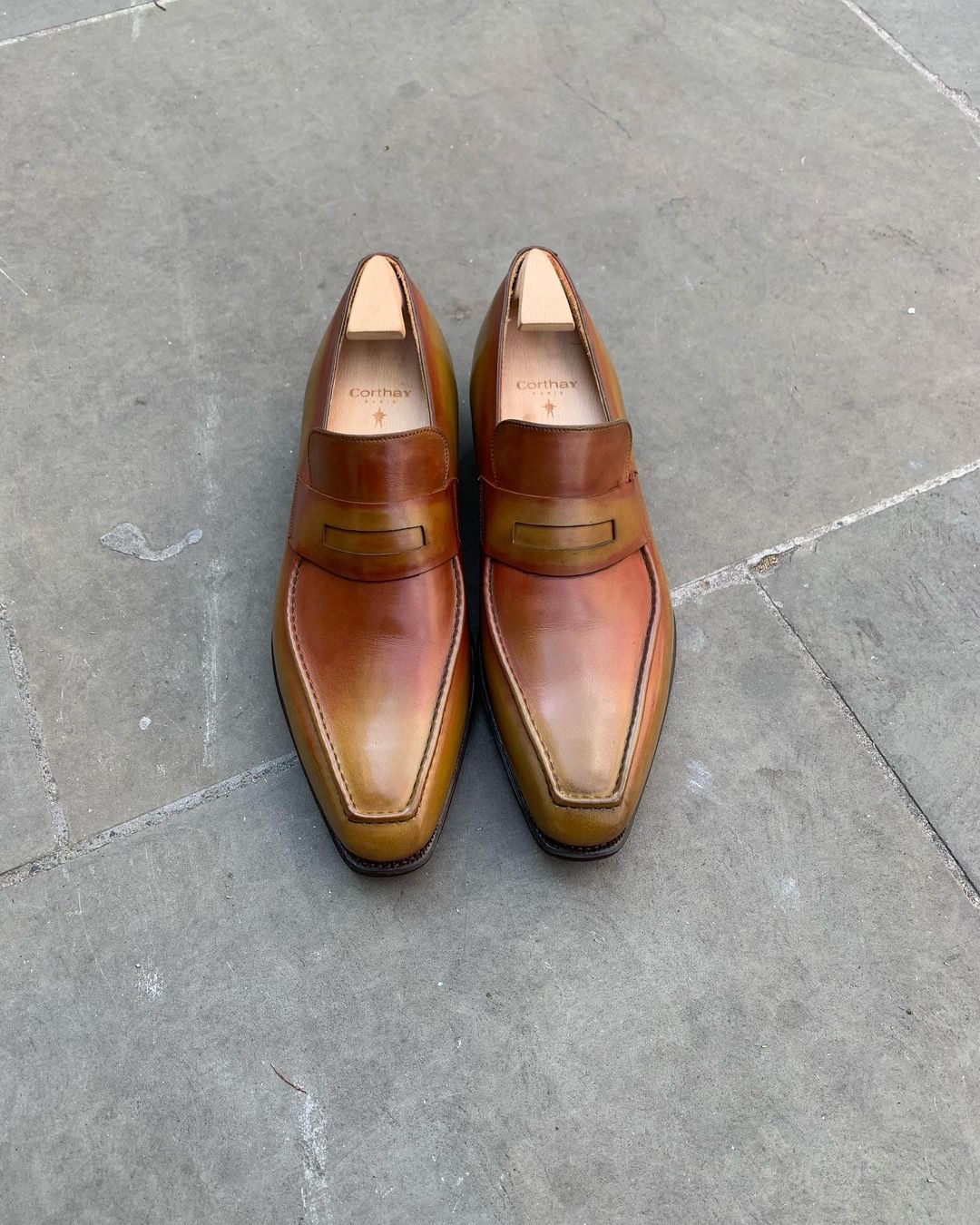 Inner: Soft Sole: Leather Gender : Male Heel: Leather Color: Oranji Patinas Style: Loafer Shoes Totally Hand stitched Manufacturing time 7-10 business days If you can’t find your Size/Color just send us message we will make for you.