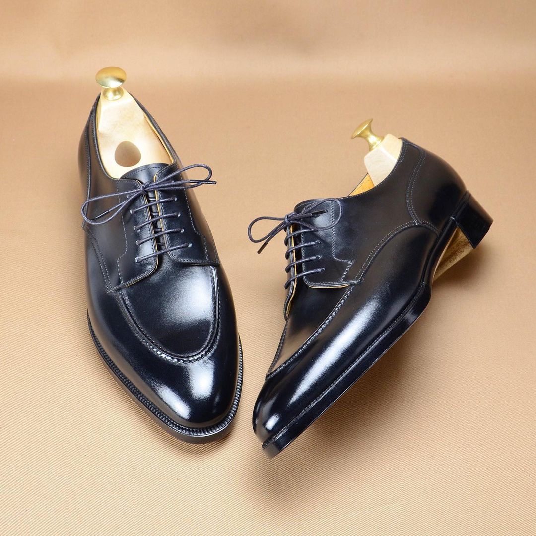 Handmade Mens Apron Front Derby in Black Calf.Oxford Dress Shoes