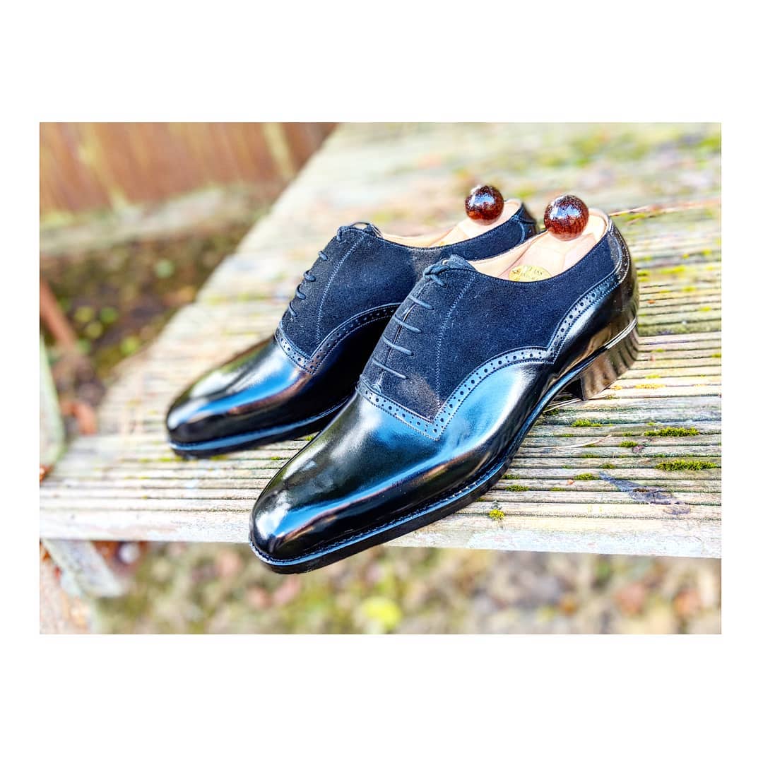 Handmade Men Black Calf and Blue Suede Leather Dress Shoes