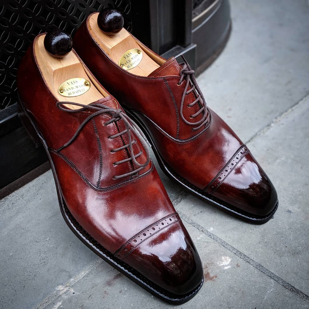Beautiful Rich Gold Museum Calf with Single sole and Burnished Toe Oxford Lace up Shoes