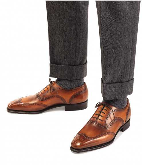 New Men Oxford Caramel Brule Patina Leather Wingtip Dress Shoes