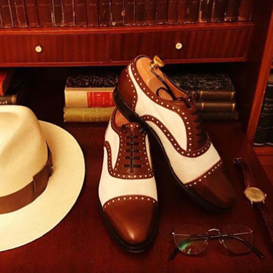 Handmade Brown White Oxford Lace up Dress Formal Shoes