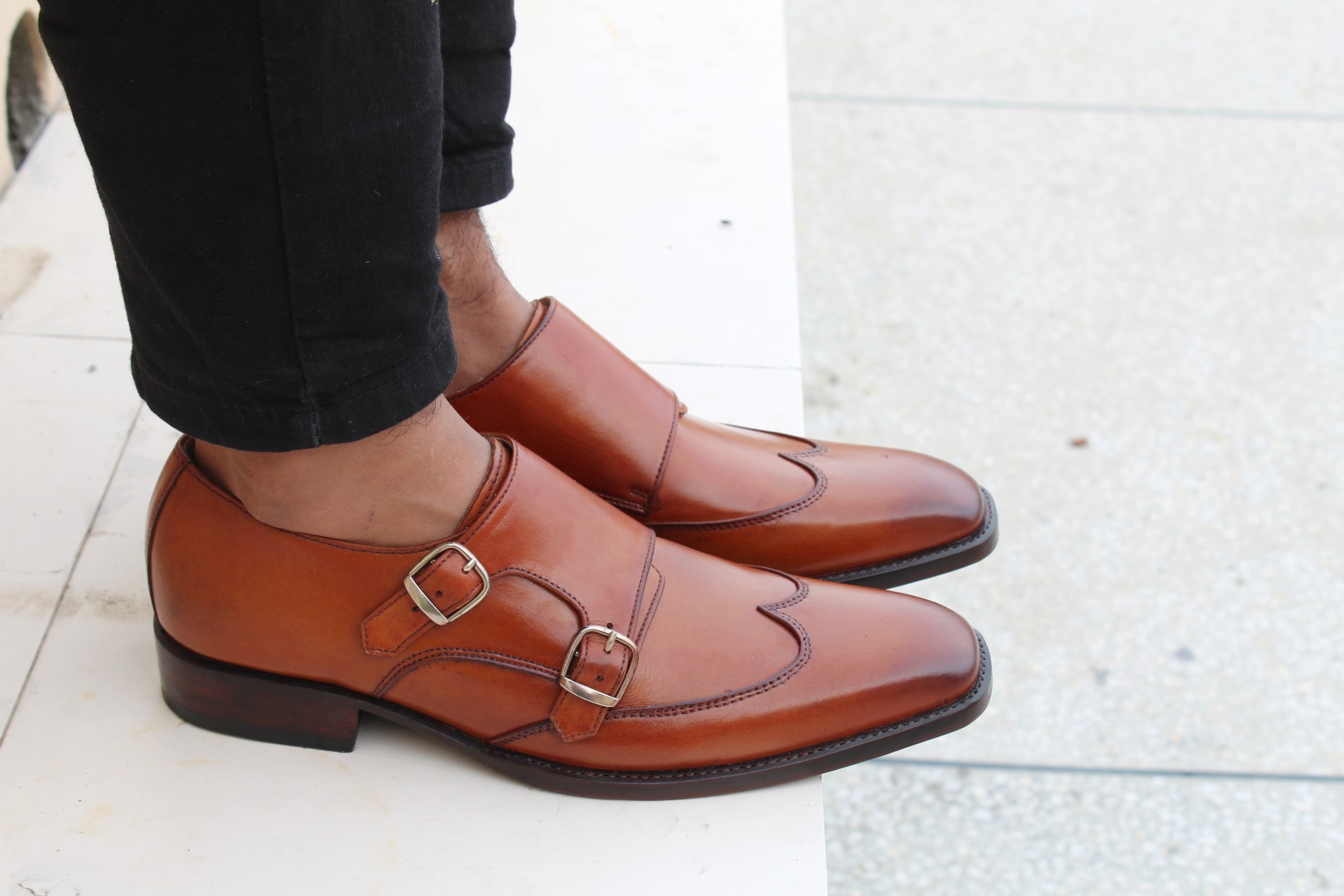 Inner: Soft Sole: Leather Gender : Male Heel: Leather Color: Brown Style: Double Monk Shoes Lining Soft Calf Leather Lining Totally Hand stitched Manufacturing time 7-10 business days If you can’t find your Size/Color just send us message we will make for you.