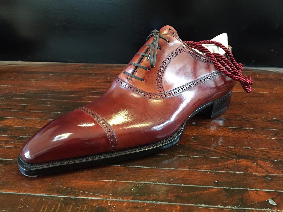 Handmade French Calf Orange Antiqued Leather Dress Shoes