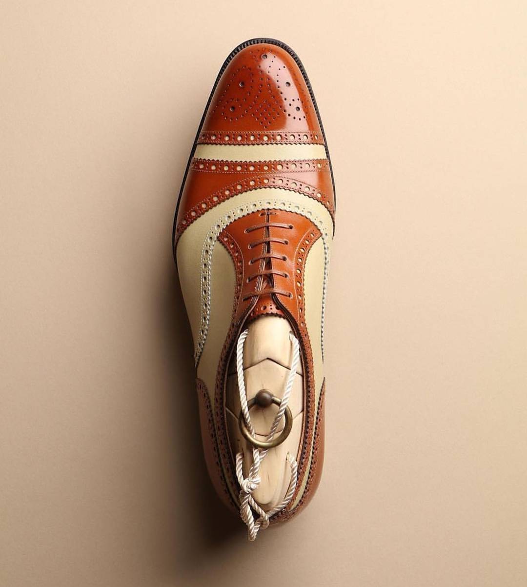 Brown Beige Oxford Mens Handmade Luxury Dress Shoes
