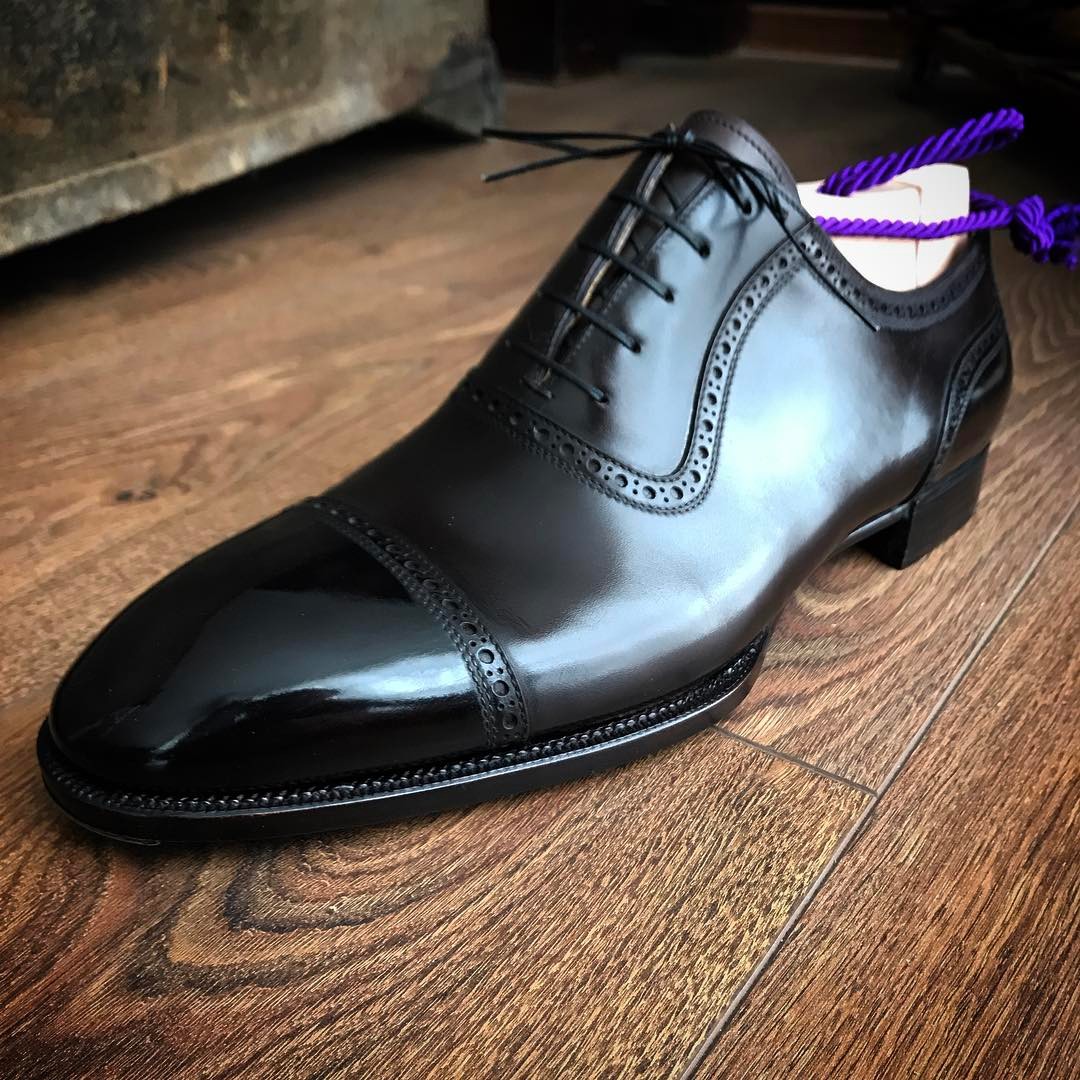 Handmade Novecento Line Black French Calf Oxford Classic Dress Shoes