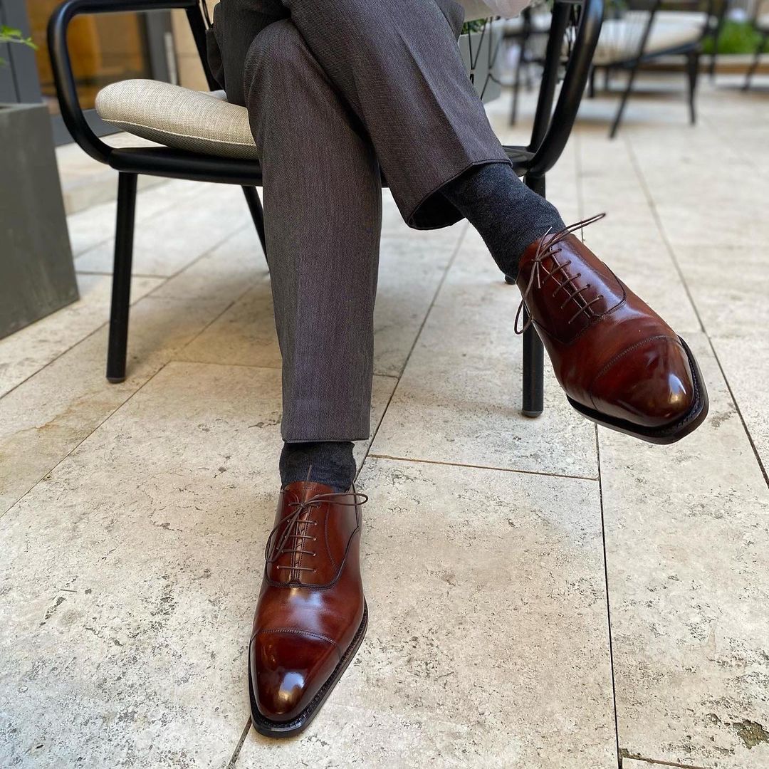 Handmade English Gold Museum Calf Leather Oxford Lace up Dress Shoes