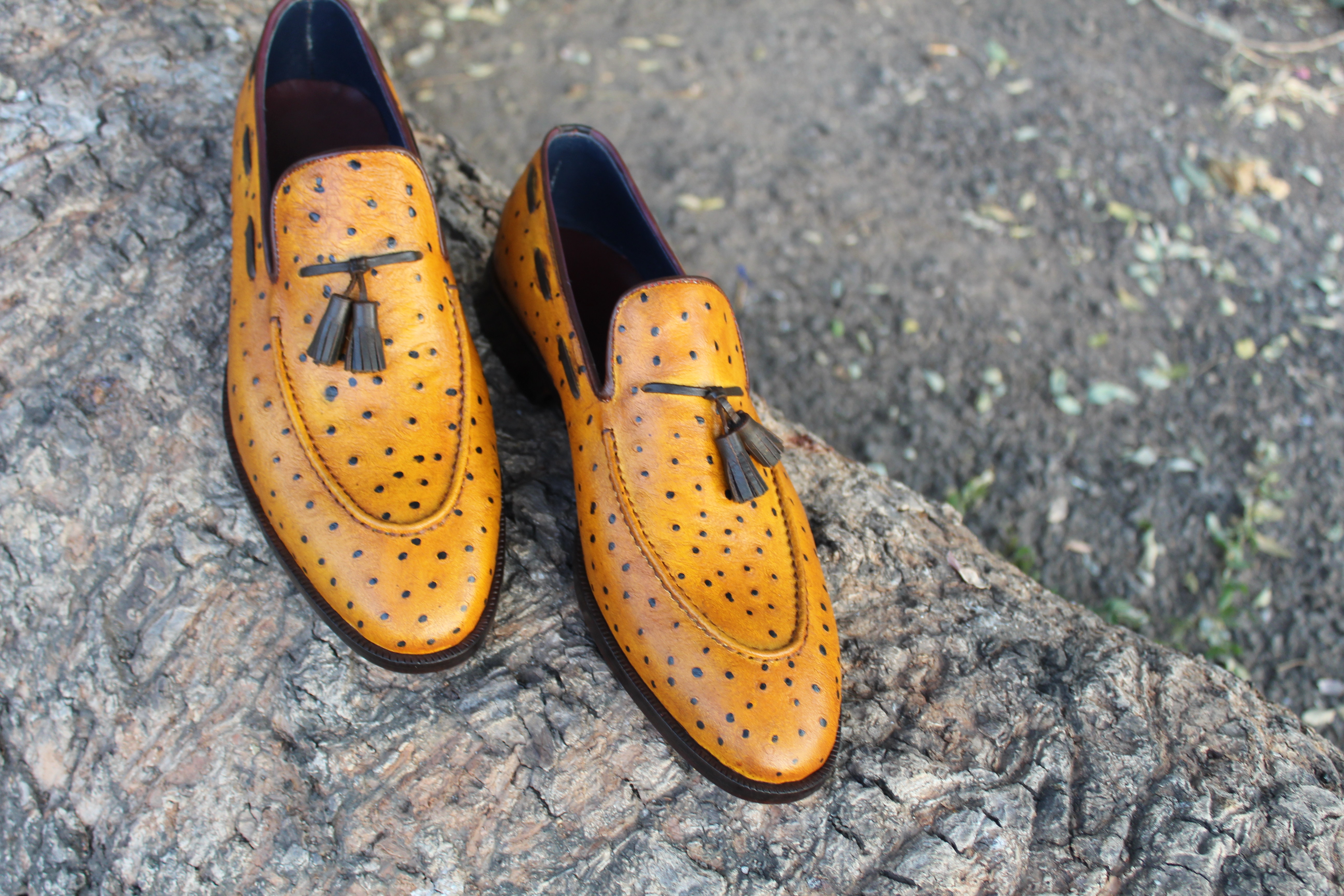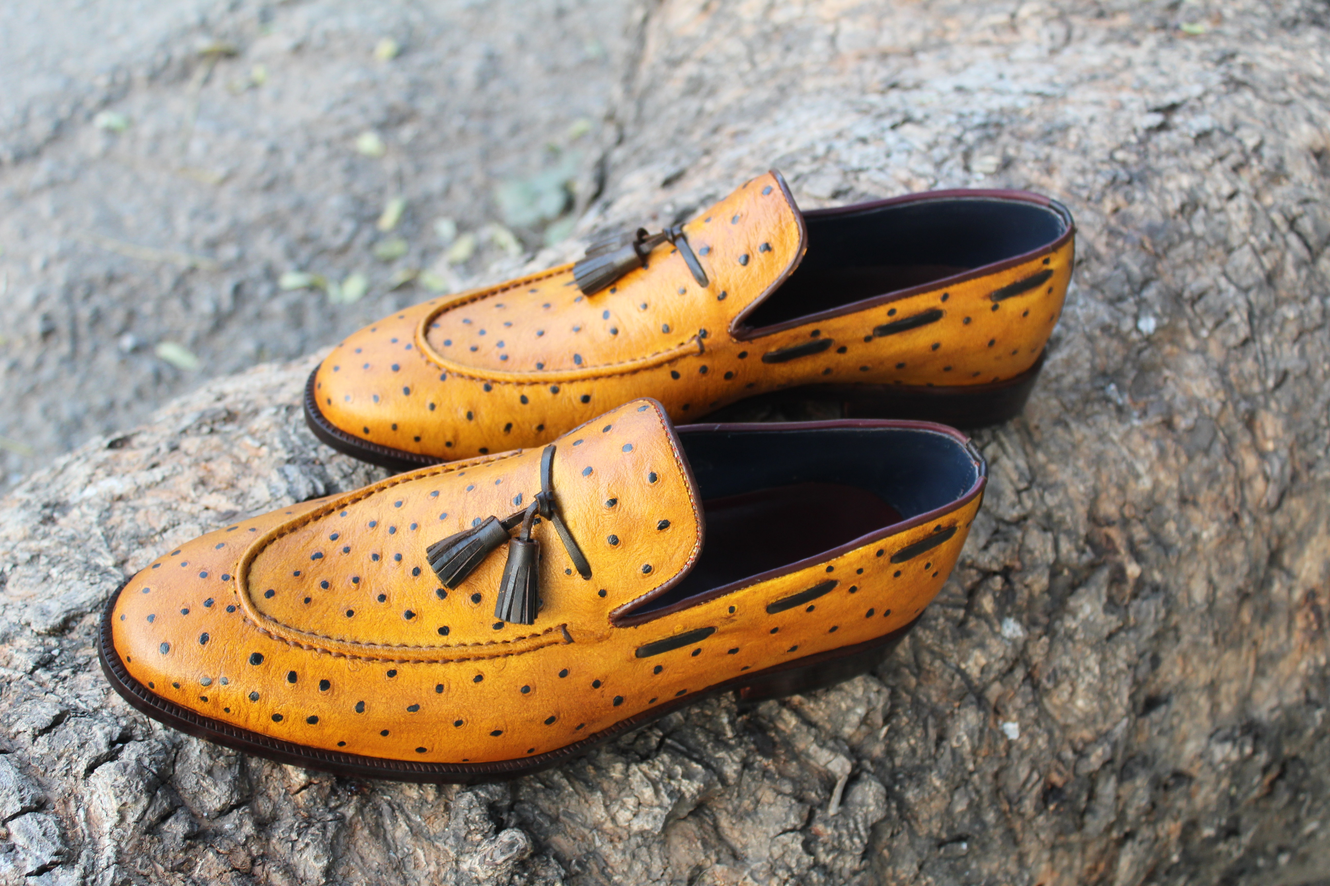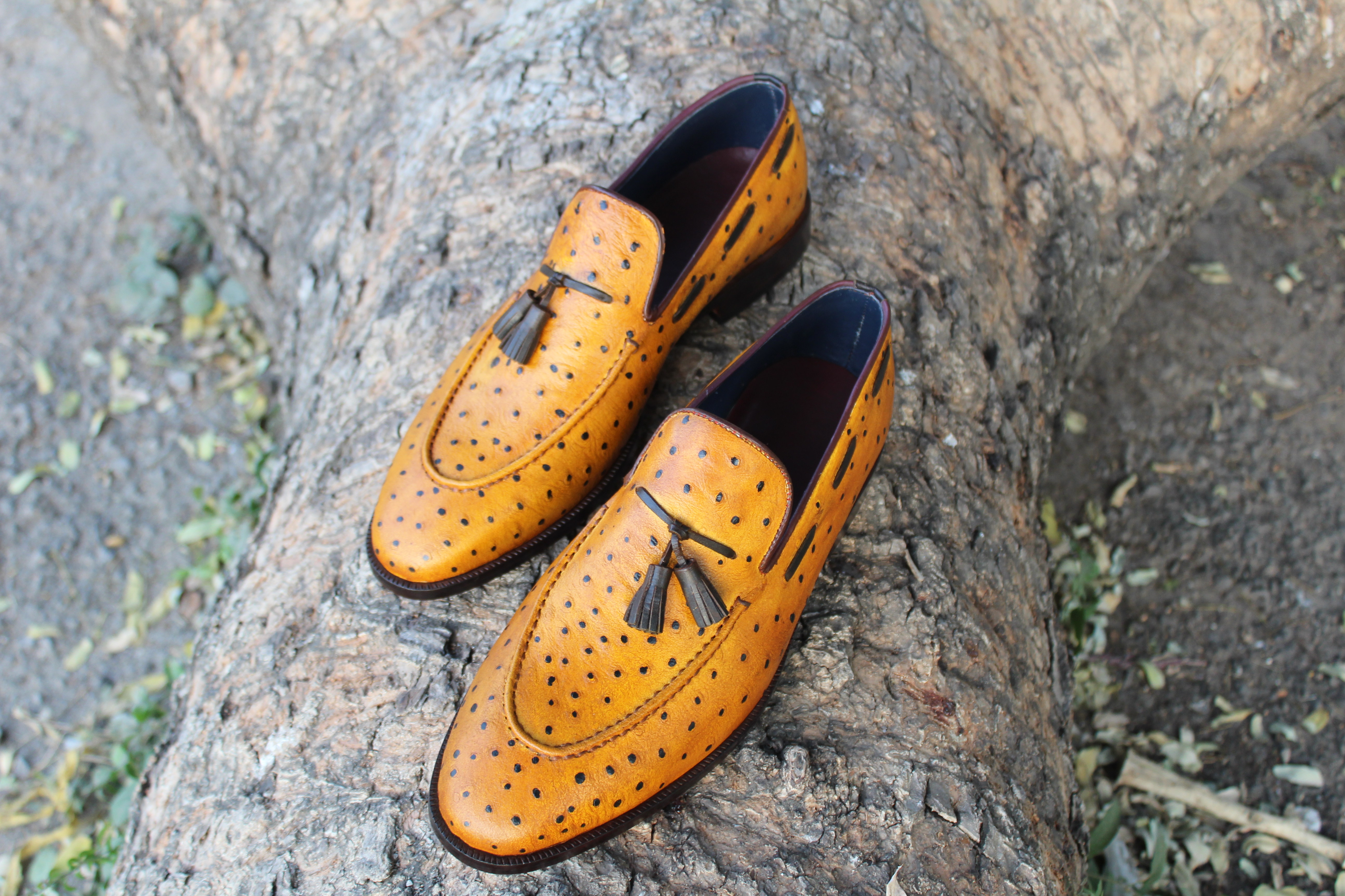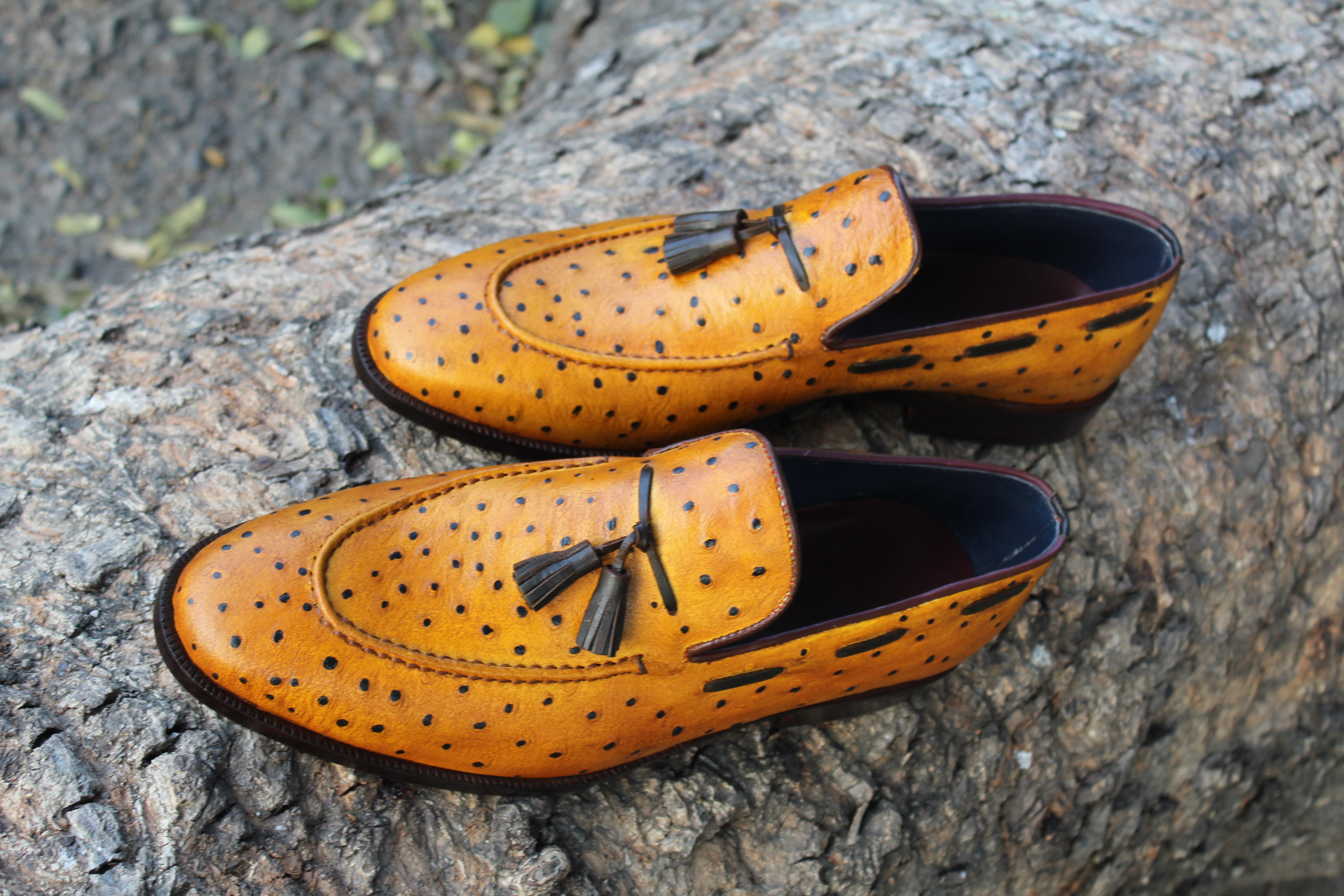 Handmade Men Ostrich Leather Classic Tassel Loafers Shoes