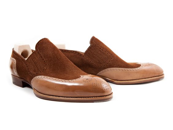 New Unique Men Brown/Suede Leather Wingtip Loafers Dress Shoes