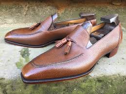Bespoke Handmade Men Corniche in Rustic Arran Grain Calf Leather Tassel Loafers Shoes