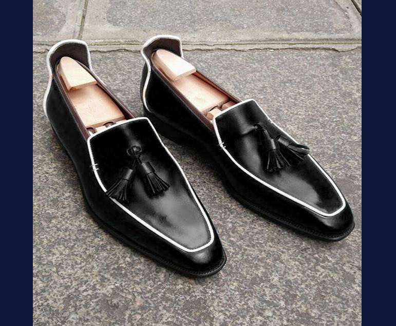 Inner: Soft Sole: Leather Gender : Male Heel: Leather Color: Black Style: Tassel Loafers Shoes Totally Hand stitched Manufacturing time 7-10 business days If you can’t find your Size/Color just send us message we will make for you.