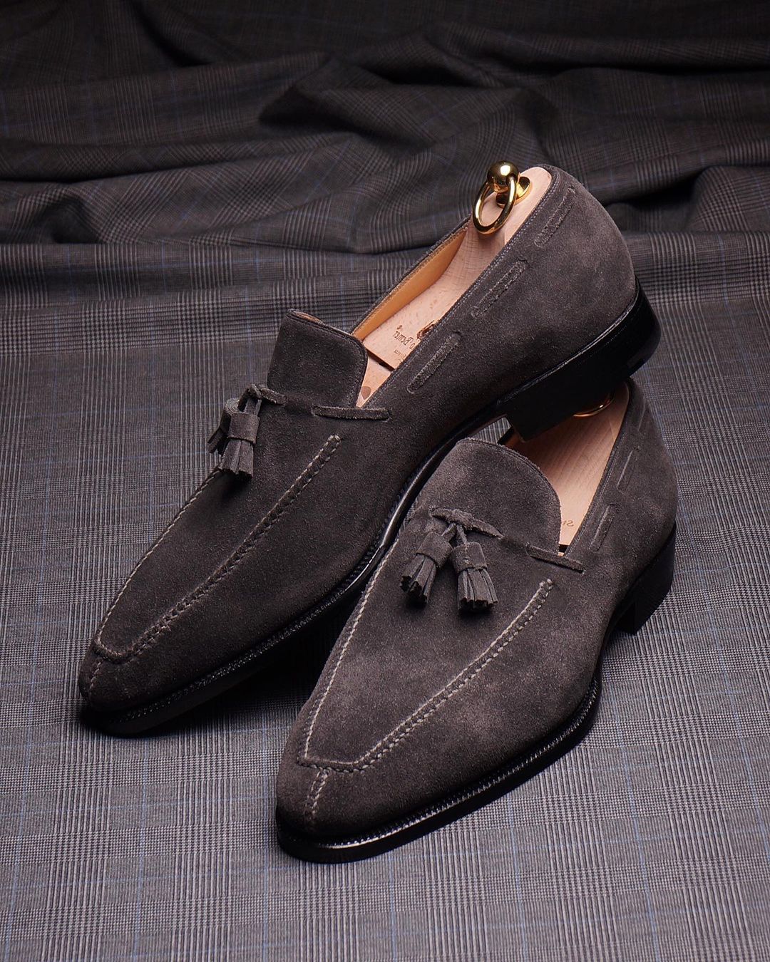 Inner: Soft Sole: Leather Gender : Male Heel: Leather Color: Grey Style: Tassel Loafers Shoes Totally Hand stitched Manufacturing time 7-10 business days If you can’t find your Size/Color just send us message we will make for you.