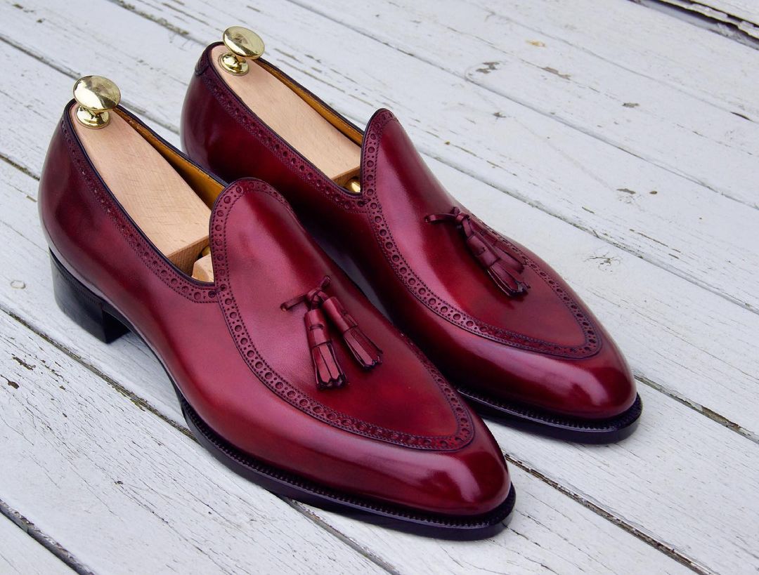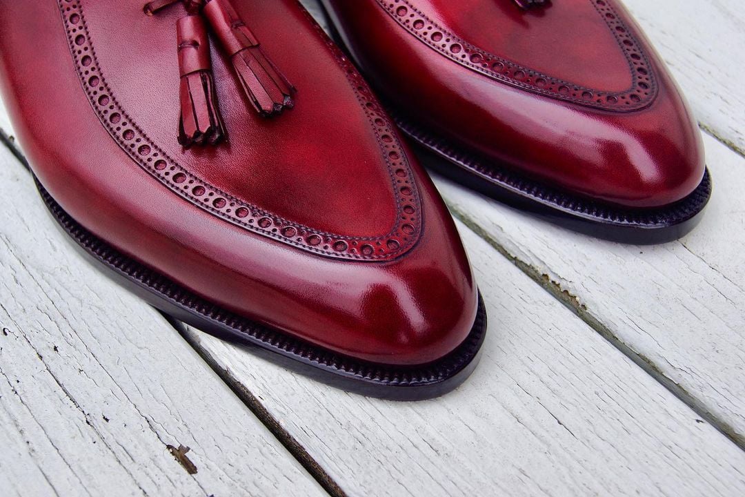 Bespoke Oxblood Color Classic Calf Leather Tassel Loafers Men Shoes