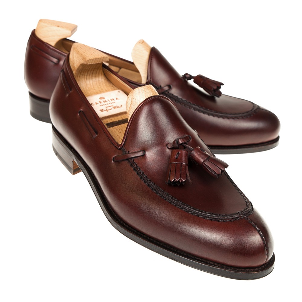 Tassel Loafers Mens Shoes in Burgundy Calf Leather