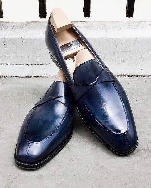 Inner: Soft Sole: Leather Gender : Male Heel: Leather Color: Blue Style: Loafers Shoes Totally Hand stitched Manufacturing time 7-10 business days If you can’t find your Size/Color just send us message we will make for you.