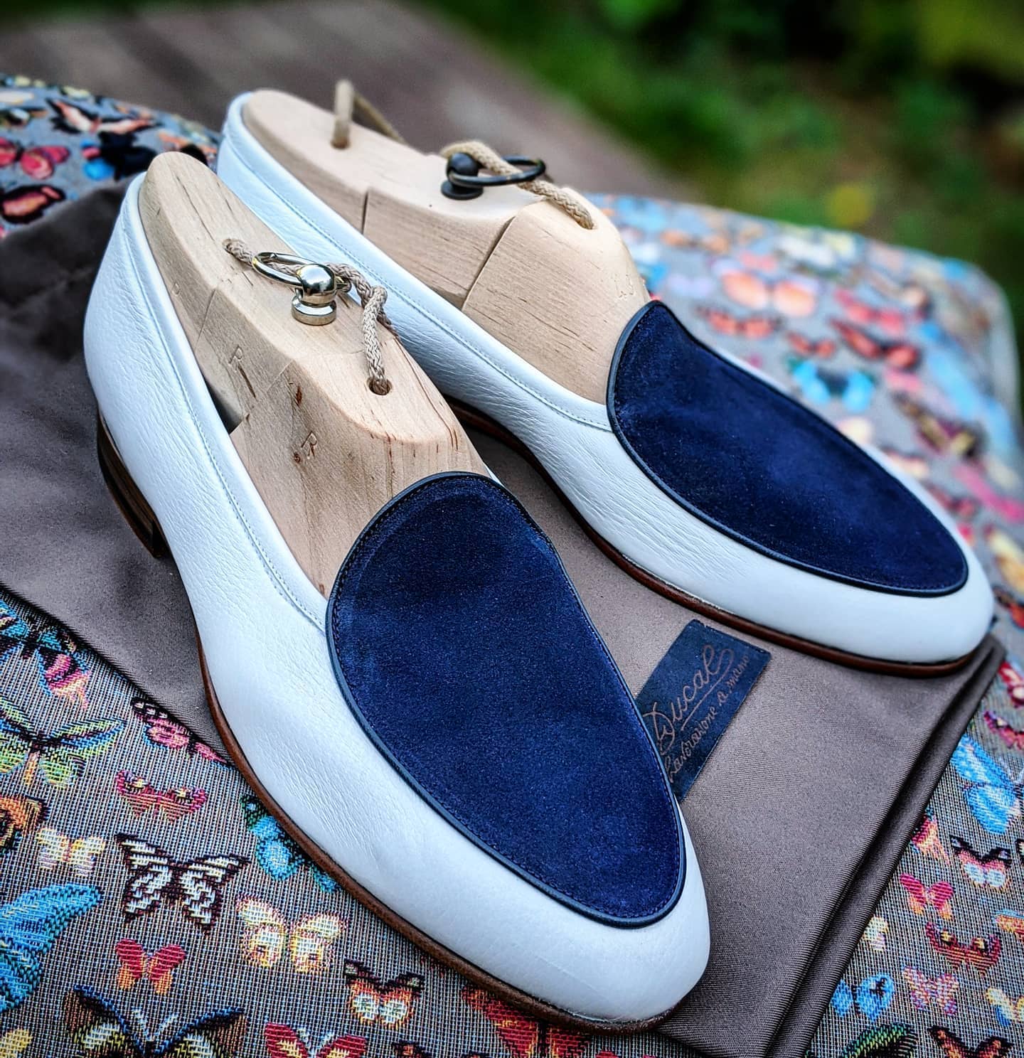 Inner: Soft Sole: Leather Gender : Male Heel: Leather Color: Blue / White Style: Loafers Shoes Lining Soft Calf Leather Lining Totally Hand stitched Manufacturing time 7-10 business days If you can’t find your Size/Color just send us message we will make for you.