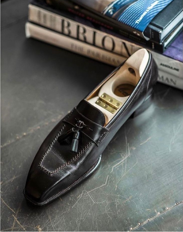 Inner: Soft Sole: Leather Gender : Male Heel: Leather Color: Black Style: Tassel Loafers Shoes Lining Soft Calf Leather Lining Totally Hand stitched Manufacturing time 7-10 business days If you can’t find your Size/Color just send us message we will make for you.