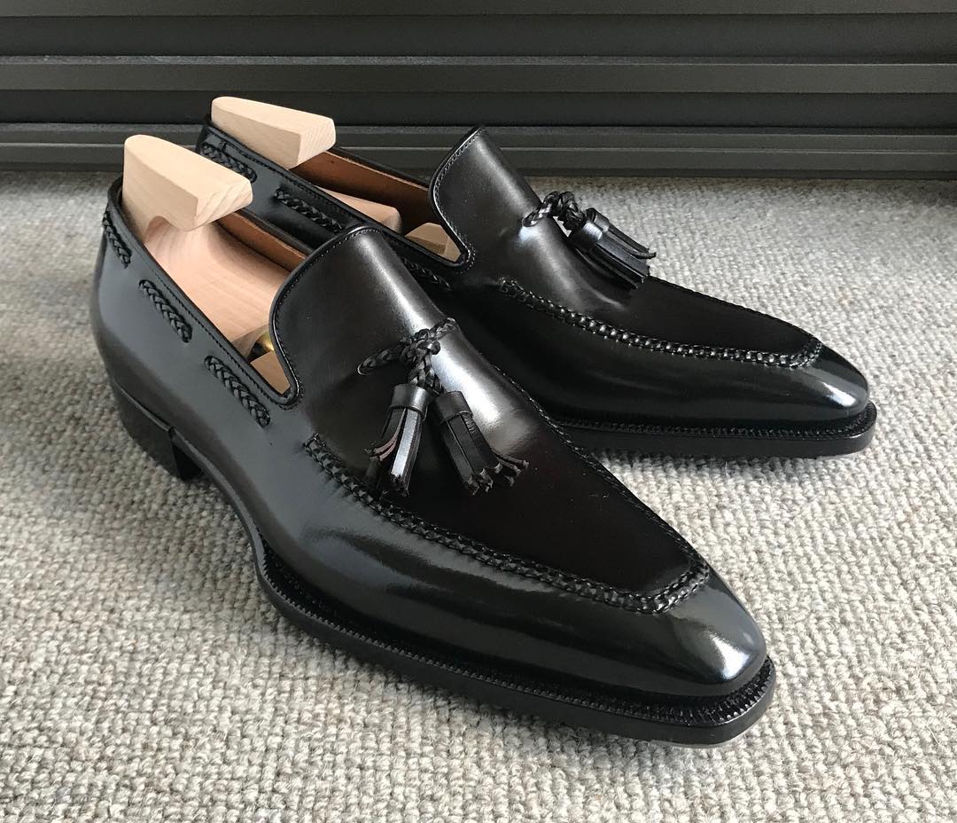 Inner: Soft Sole: Leather Gender : Male Heel: Leather Color: Black Style: Tassel Loafers Shoes Totally Hand stitched Manufacturing time 7-10 business days If you can’t find your Size/Color just send us message we will make for you.