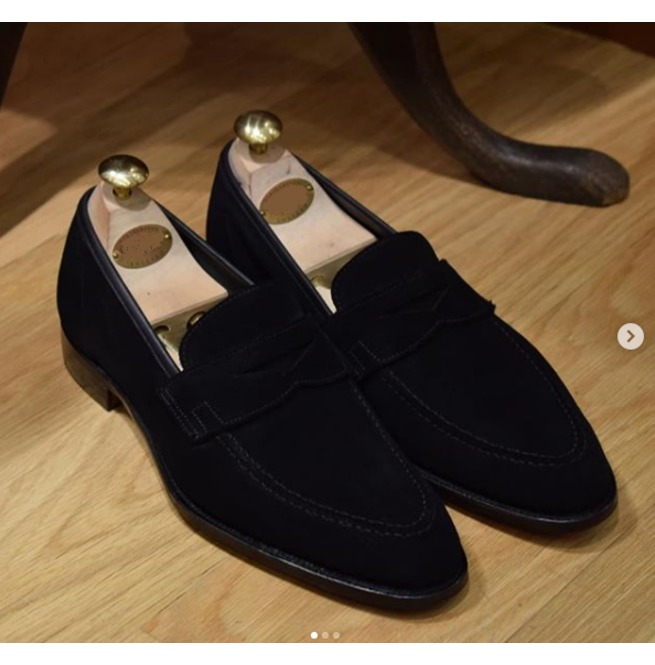 Handmade Men Black Suede Leather Loafers Dress Moccasin Slip On Shoes