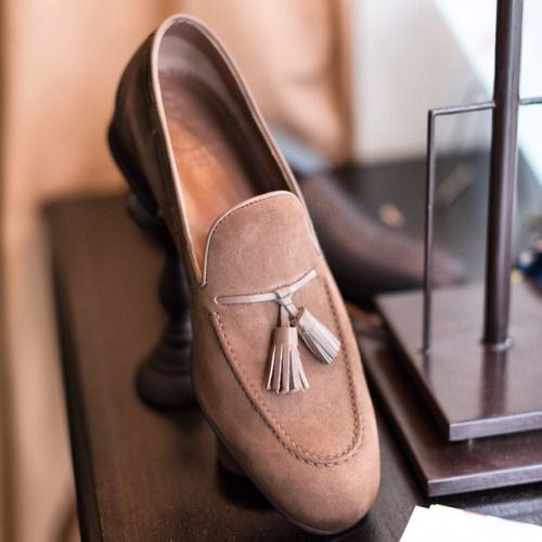 Handmade Mens Calfskin Suede Formal Tassel Loafers Dress Shoes