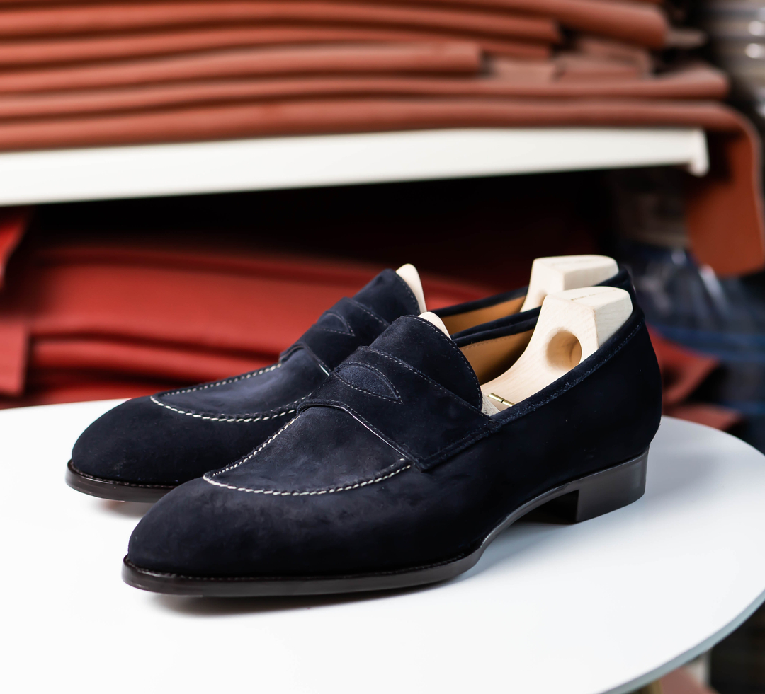 Handmade Black Suede Leather Penny Loafer Moccasin Formal Shoes