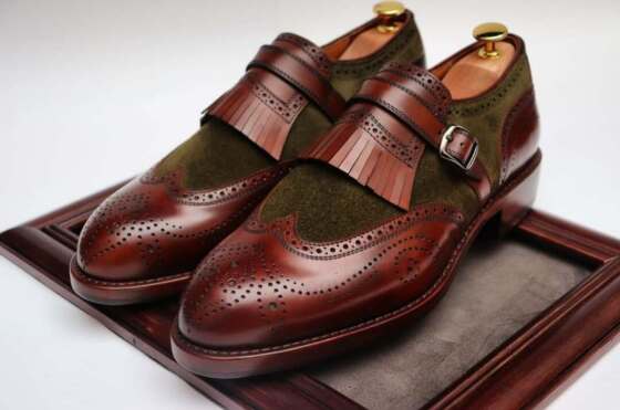 New Handmade BrownSuede Leather shoes, Men Fringes Loafers Monk Strap Dress Shoes