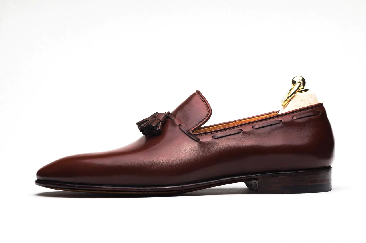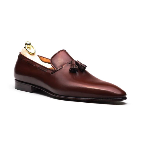 Inner: Soft Sole: Leather Gender : Male Heel: Leather Color: Burgundy Style: Tassel Loafers Shoes Lining Soft Calf Leather Lining Totally Hand stitched Manufacturing time 7-10 business days If you can’t find your Size/Color just send us message we will make for you.