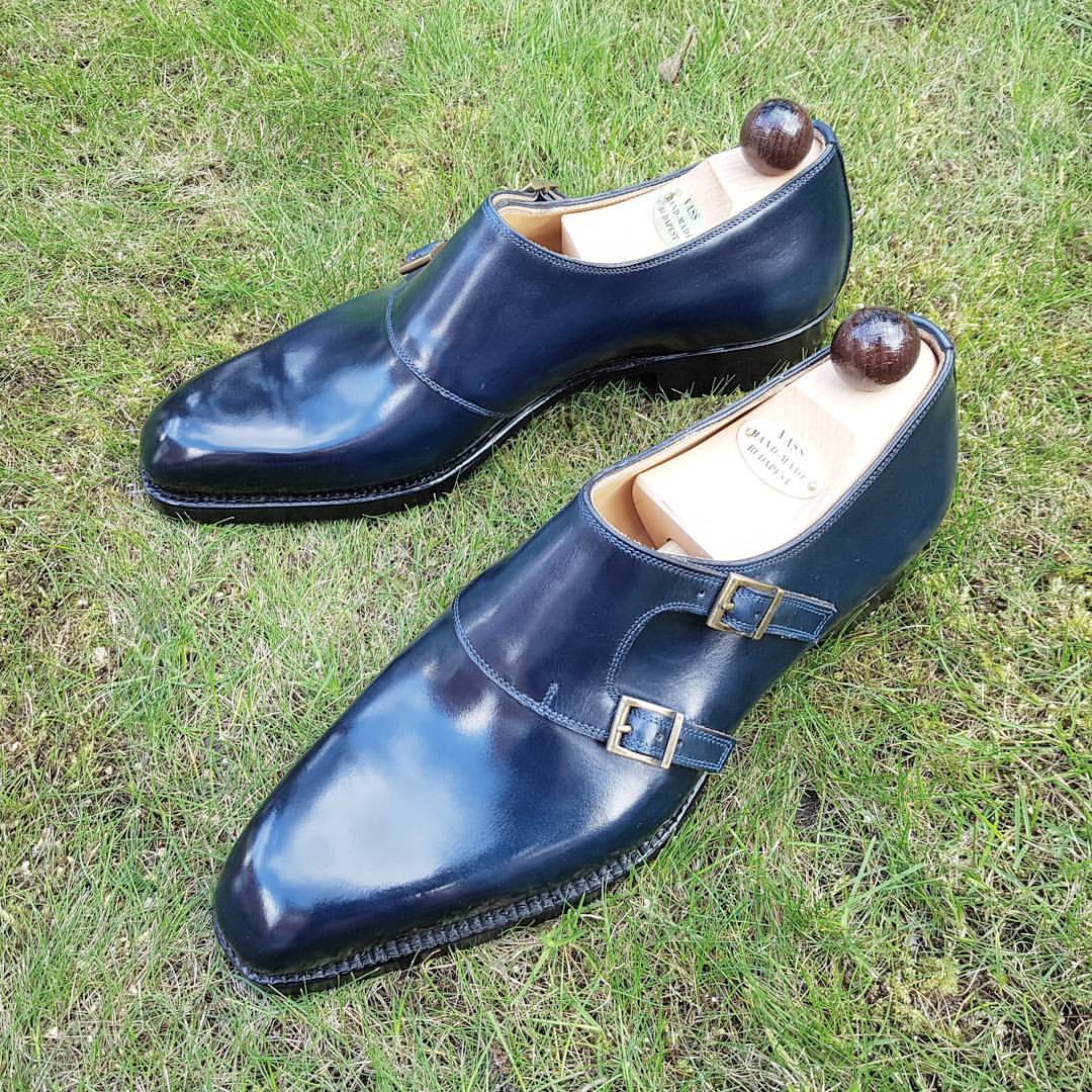 Inner: Soft Sole: Leather Gender : Male Heel: Leather Color: Blue Style: Monk Strap Shoes Lining Soft Calf Leather Lining Totally Hand stitched Manufacturing time 7-10 business days If you can’t find your Size/Color just send us message we will make for you.