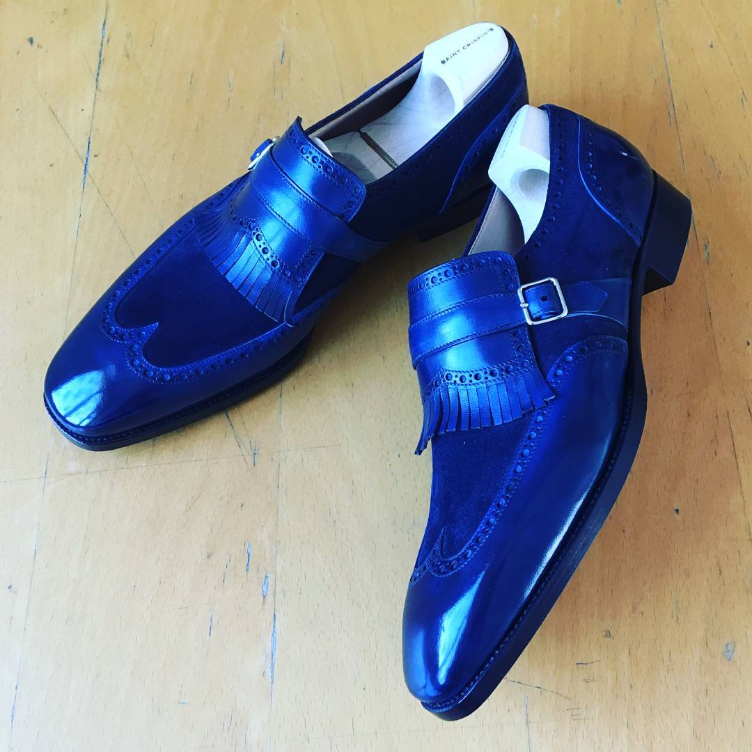 Inner: Soft Sole: Leather Gender : Male Heel: Leather Color: Blue Style: Monk Strap Shoes Lining Soft Calf Leather Lining Totally Hand stitched Manufacturing time 7-10 business days If you can’t find your Size/Color just send us message we will make for you.