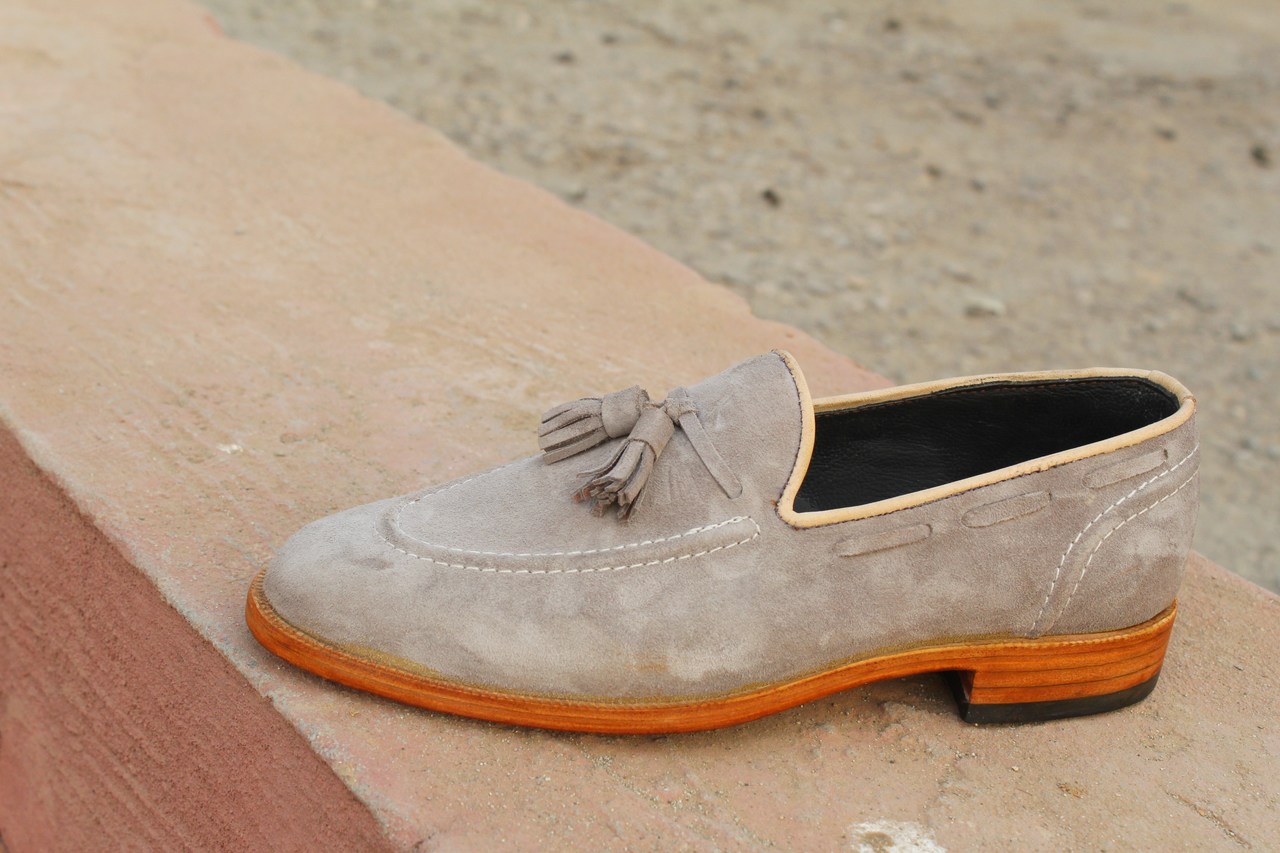 Inner: Soft Sole: Leather( Goodyear Welted ) Gender : Male Heel: Leather Color: Gray Style: Tassel Loafers Dress Shoes Lining Soft Calf Leather Lining Totally Hand stitched Manufacturing time 7-10 business days If you can’t find your Size/Color just send us message we will make for you.