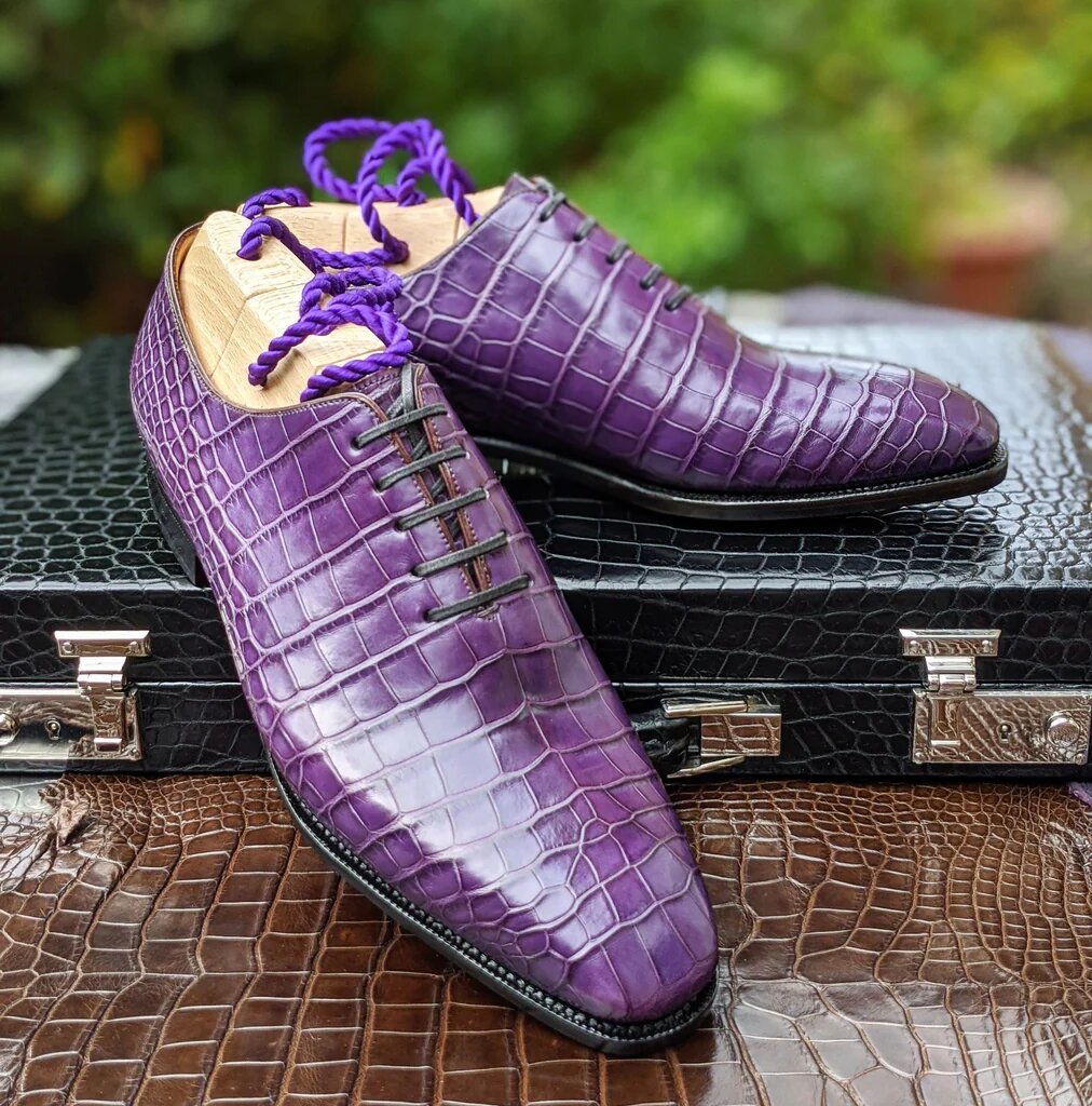 Inner: Soft Sole: Leather Gender : Male Heel: Leather Color: Purple Style: Dress Shoes Totally Hand stitched Manufacturing time 7-10 business days If you can’t find your Size/Color just send us message we will make for you.