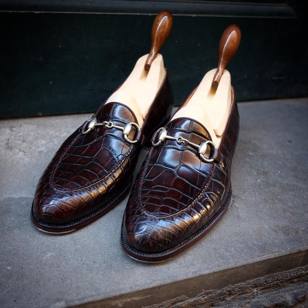 Horsebit Loafer in Dark Brown Crocodile Texture Leather Dress Shoes