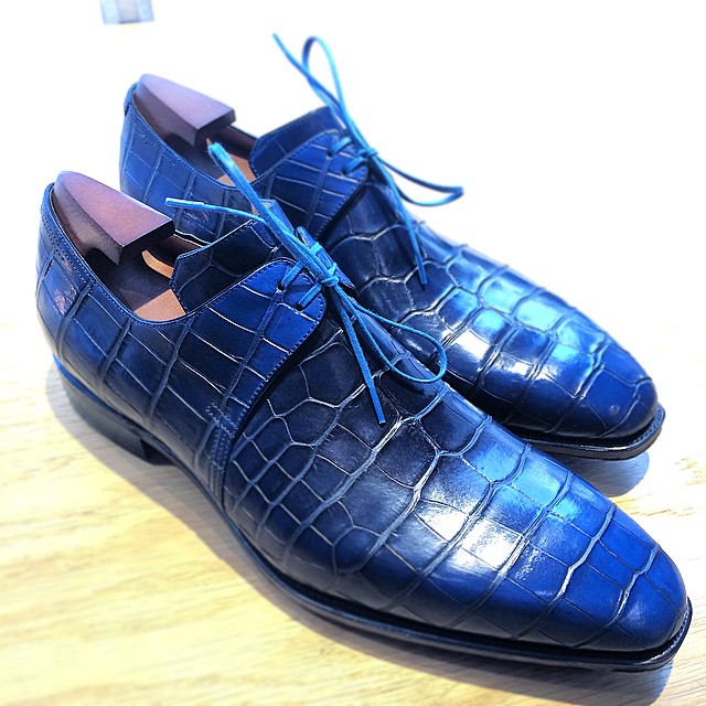 Handmade Men Blue Crocodile Texture Leather Dress Shoes