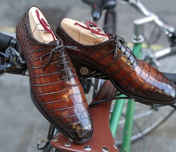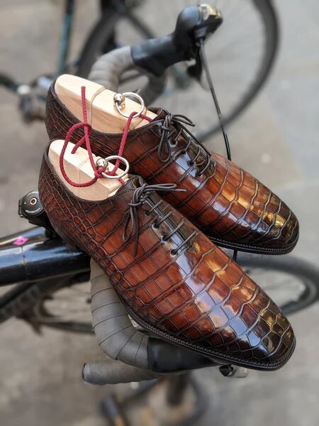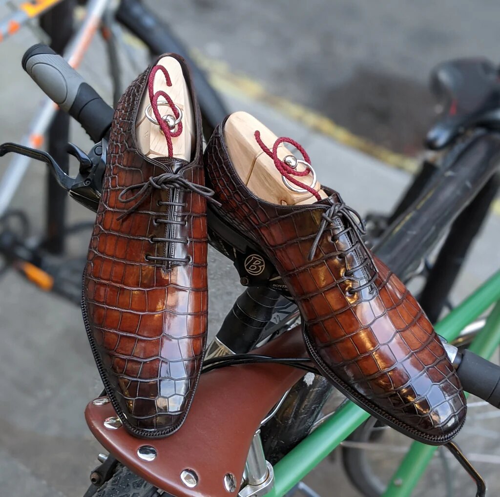Wholecut - Bourbon Patina Finished Crocodile Shoes